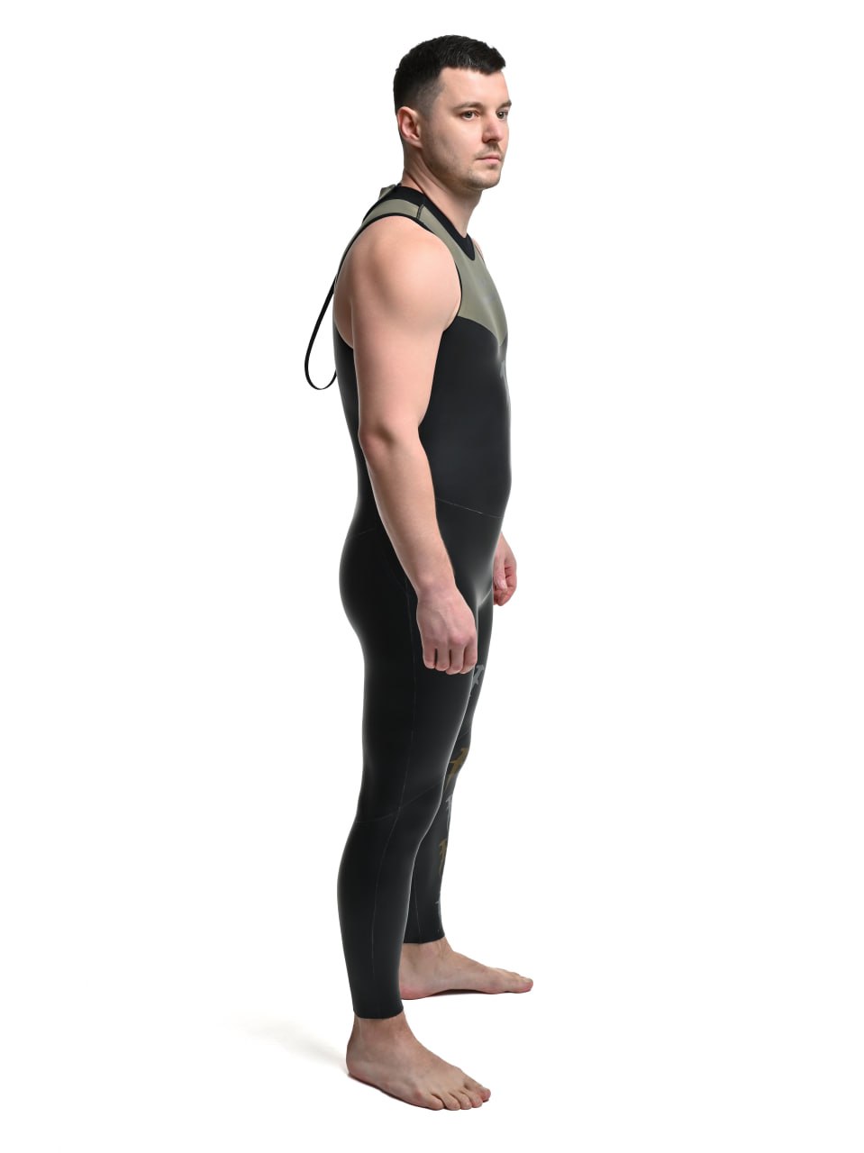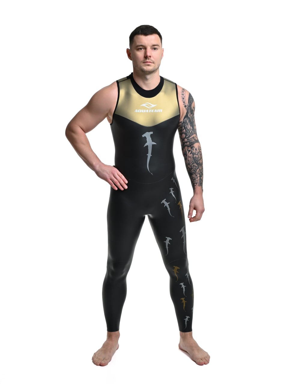 Анатомичный крой костюма обеспечивает идеальную посадку и свободу движений, позволяя вам сосредоточиться на тренировках без каких-либо ограничений. Воротник-стойка обеспечивает дополнительную защиту, а проймы, обработанные эластичной лентой, минимизируют попадание воды, что делает каждую тренировку более комфортной.